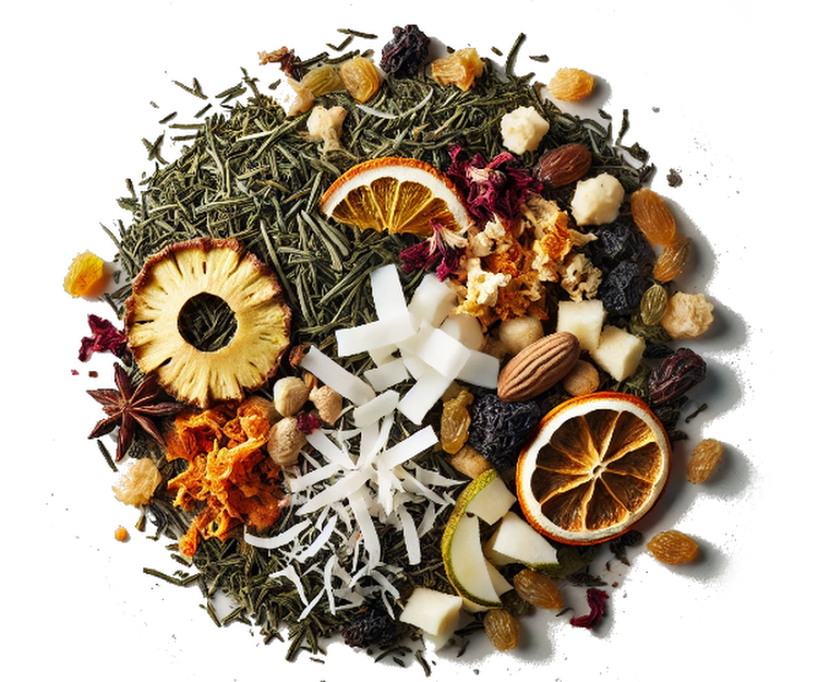 Herbata Pina Colada – Egzotyczna Rozkosz w Każdym Łyku Odkryj Herbatę Pina Colada, herbatę, która przeniesie Cię do egzotycznych miejsc już przy pierwszym łyku. Oparta na wyrafinowanej zielonej herbacie i bogatej kompozycji owoców i kwiatów, ta wyjątkowa mieszanka łączy egzotyczny smak ananasa i kokosa z chłodnymi nutami pomarańczy i papai. Rodzynki, hibiskus i posiekane kawałki jabłka dopełniają tę wspaniałą kreację, dając smak przypominający uwielbiany koktajl Pina Colada. Jak się nią delektować Przygotowanie Herbaty Pina Colada jest proste i pyszne: Zagotuj wodę w temperaturze 80-85°C (idealna do zielonej herbaty, aby się nie przypaliła). Dodaj 1-2 łyżeczki herbaty do każdej filiżanki. Pozostaw do zaparzenia na 2-3 minuty (lub trochę dłużej, jeśli wolisz mocniejszy smak). Odcedź i delektuj się na ciepło lub na zimno, z miodem lub bez. Aby uzyskać chłodną letnią odmianę, przygotuj ją jako mrożoną herbatę z lodem i plasterkiem świeżego ananasa. Korzyści zdrowotne Zielona herbata jest bogata w przeciwutleniacze, które pomagają chronić przed wolnymi rodnikami. Ananas zawiera bromelainę, enzym wspomagający trawienie. Hibiskus znany jest ze swoich właściwości odmładzających i może pomóc obniżyć ciśnienie krwi. Owoce takie jak jabłko, papaja i rodzynki dodają naturalnej słodyczy i witamin, dodając energii i poprawiając samopoczucie. Świetna herbata na każdą okazję. Niezależnie od tego, czy szukasz zdrowego sposobu na rozpoczęcie dnia, czy chcesz się zrelaksować wieczorem, herbata Pina Colada to idealny wybór. Jej zrównoważony smak i wyjątkowy aromat sprawią, że będziesz do niej wracać. Spróbuj jej już dziś i ciesz się niezapomnianą podróżą smaków! 🌴🍍🥥